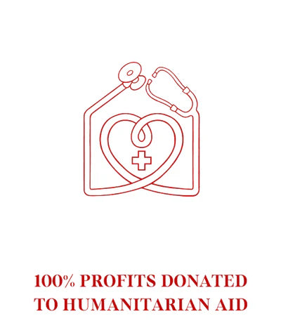 All profits go to rebuilding hospitals in Gaza.